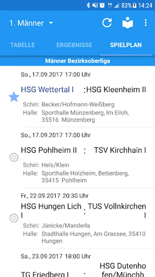 - Home Calendar to display the next home games of all HSG Wettertal Teams
