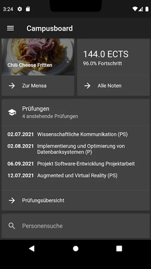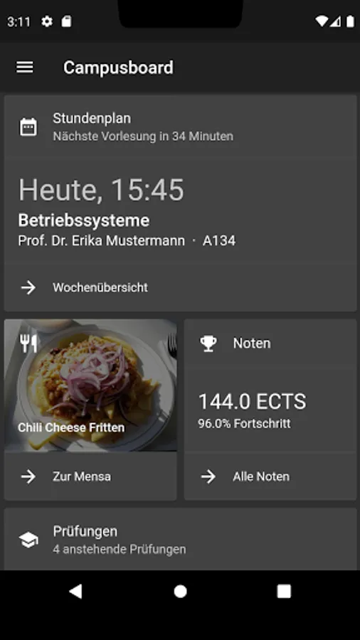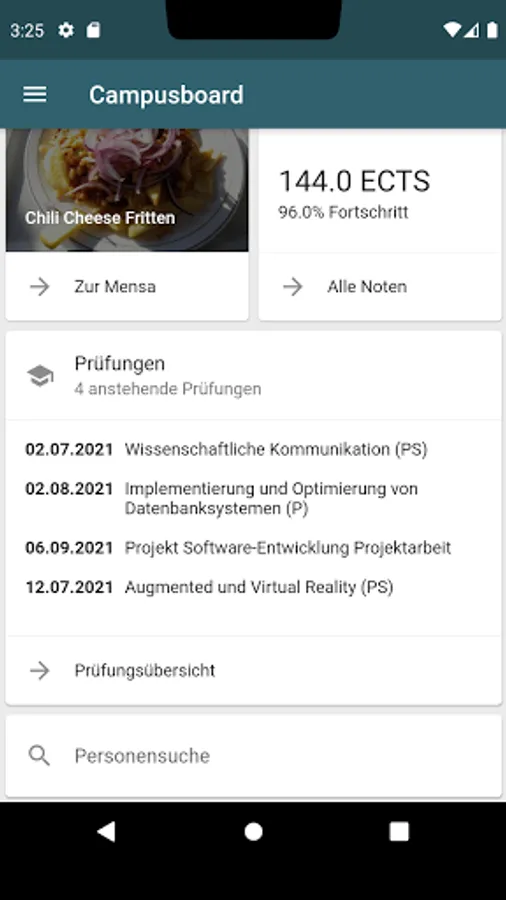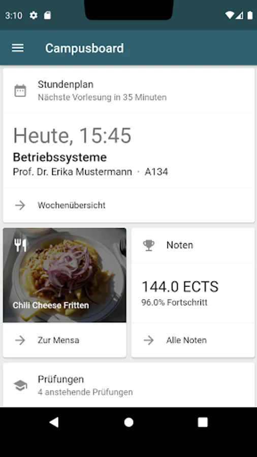 The campus board app of the University of Kaiserslautern enables easy access from mobile devices to information from the campus board portal: timetable, grades, staff, cafeteria, ...