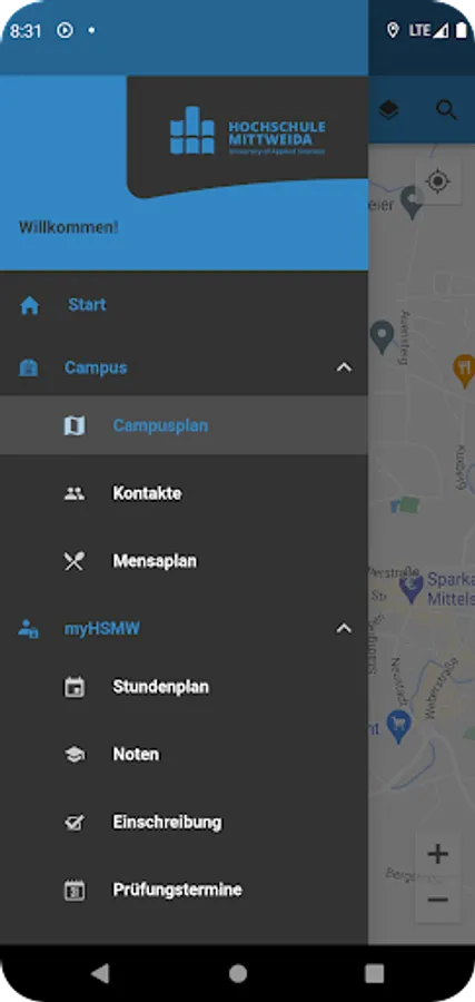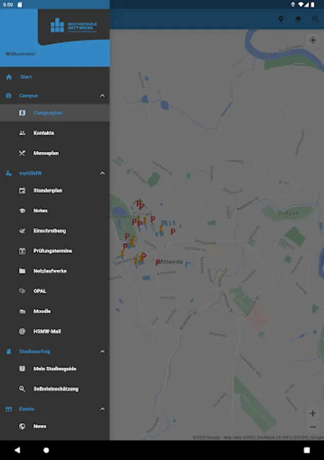 Campus map: Especially useful for first-year students to orient themselves on the campus. The campus map contains all university buildings, parking facilities, points of interest and service points in Mittweida.