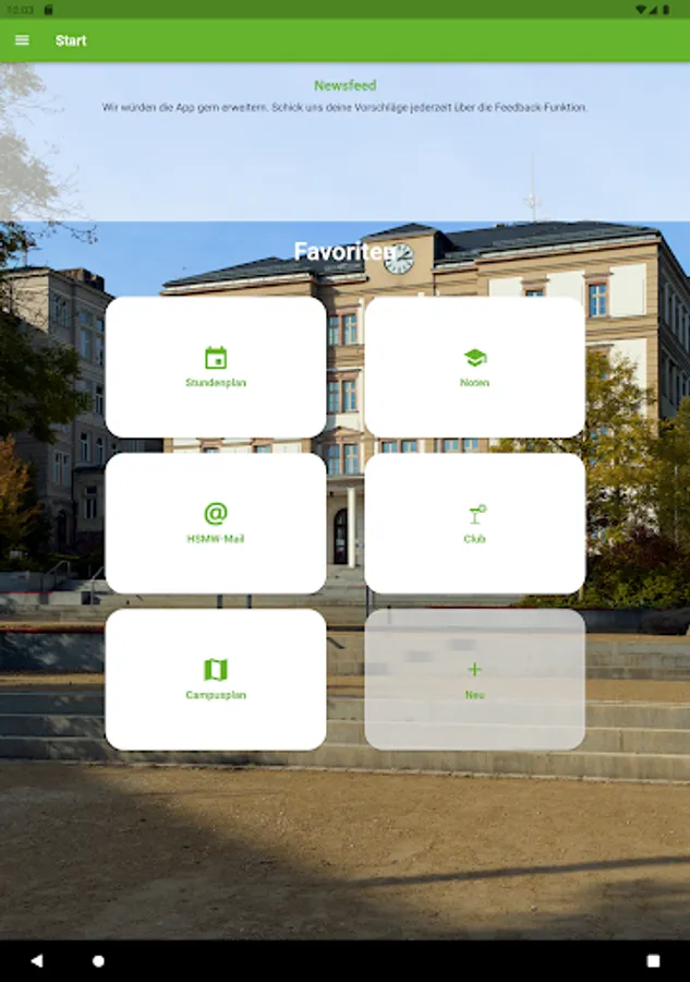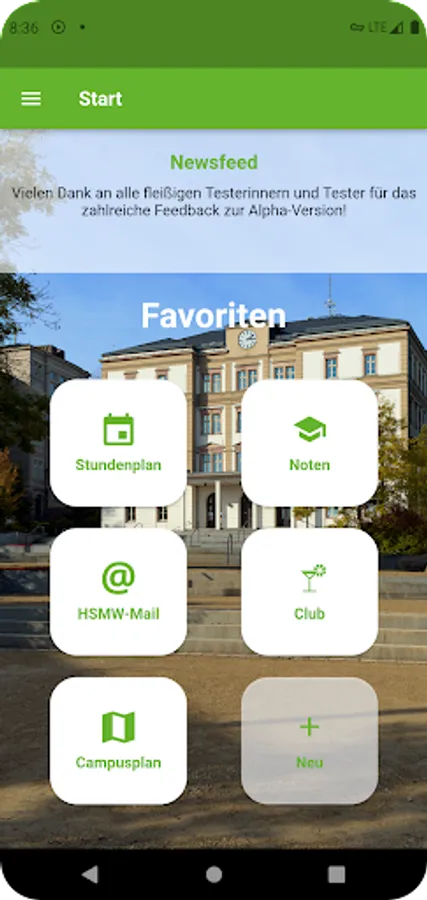 With the campus in your pocket, your personal timetable is always at your fingertips. Read the latest news from the university and the articles from the university media, produced by the students. Check out what's good in the cafeteria and be informed about events. Thanks to the contact database, you won't have to search long for contacts and contact points - and the campus map also makes it child's play to find them.