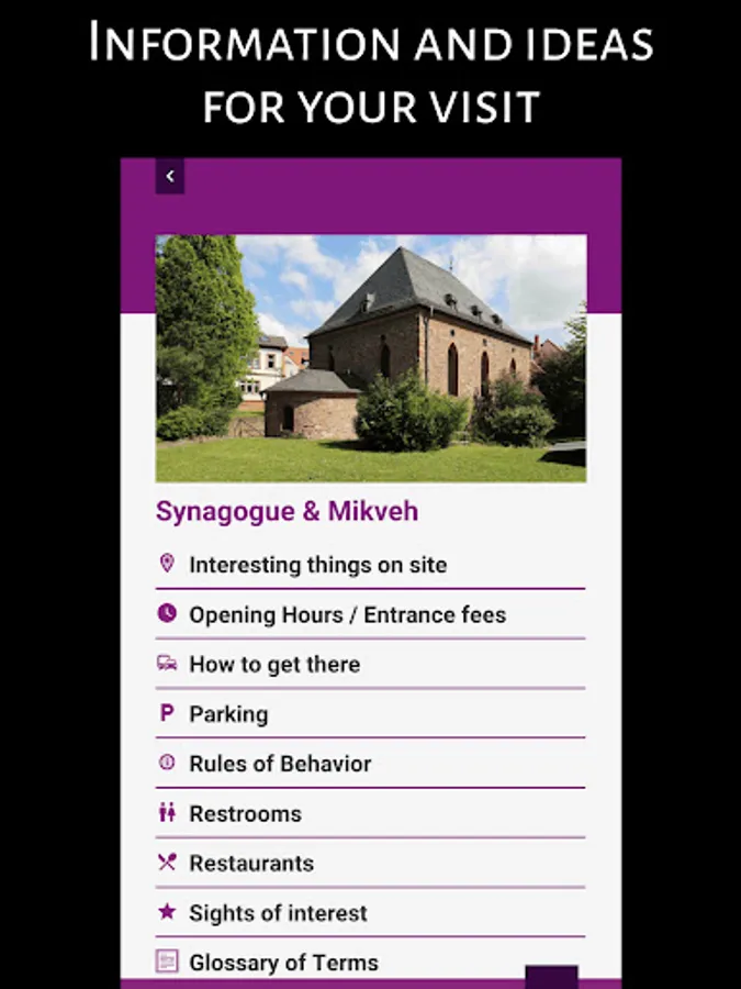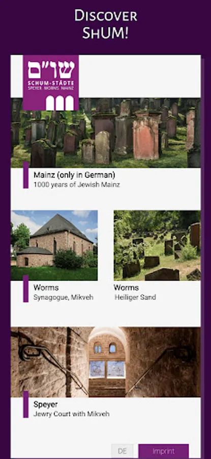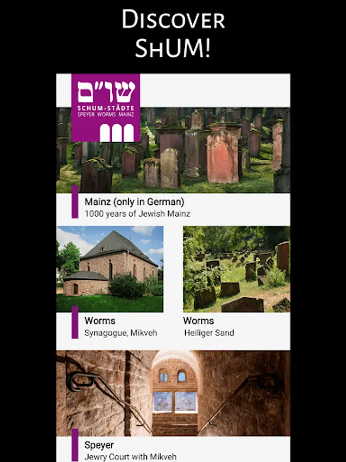 With this app, you can discover the monuments and cemeteries inscribed as World Heritage sites in a completely new way. Follow fascinating stories while learning about ShUM, the architecture of synagogues, women’s shuln and ritual baths - and why Jewish cemeteries are “places of eternity.”