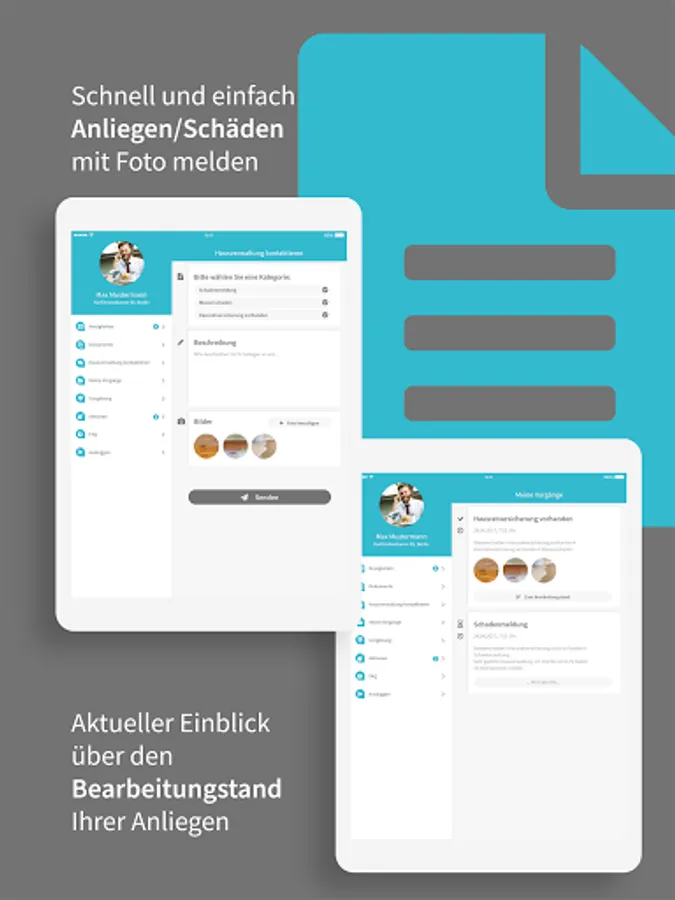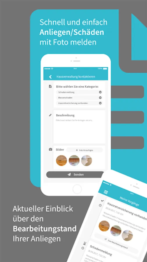 As a tenant or owner, you can report damage or concerns directly with photos via our app. Your inquiries are then available to our employees for processing and can also be forwarded to craft businesses.