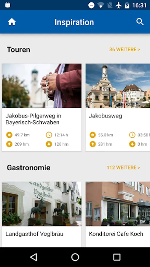 All tours are presented clearly, quickly selected and informed in detail about route and description, distance and altitude, gastronomy, sights, and if it is times longer also to accommodations. GPX data can be downloaded. You have the choice between the satellite view and two map representations.