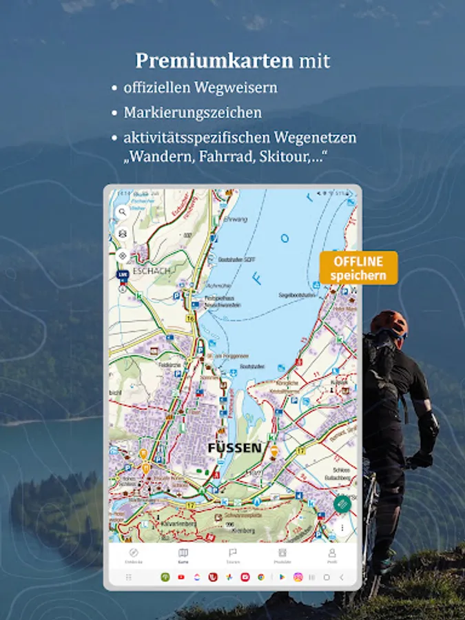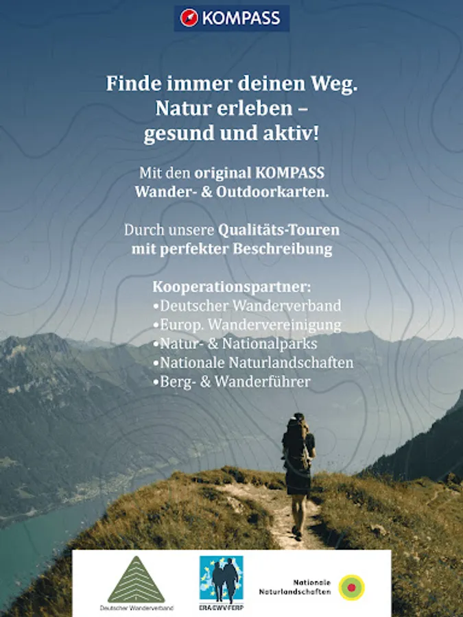 Where the asphalt ends, the world of KOMPASS begins. The whole world of KOMPASS exists in our KOMPASS hiking app. This means access to real hiking maps and over 6000 editorially approved hiking tours - offline storage included.