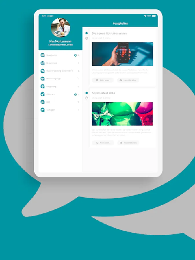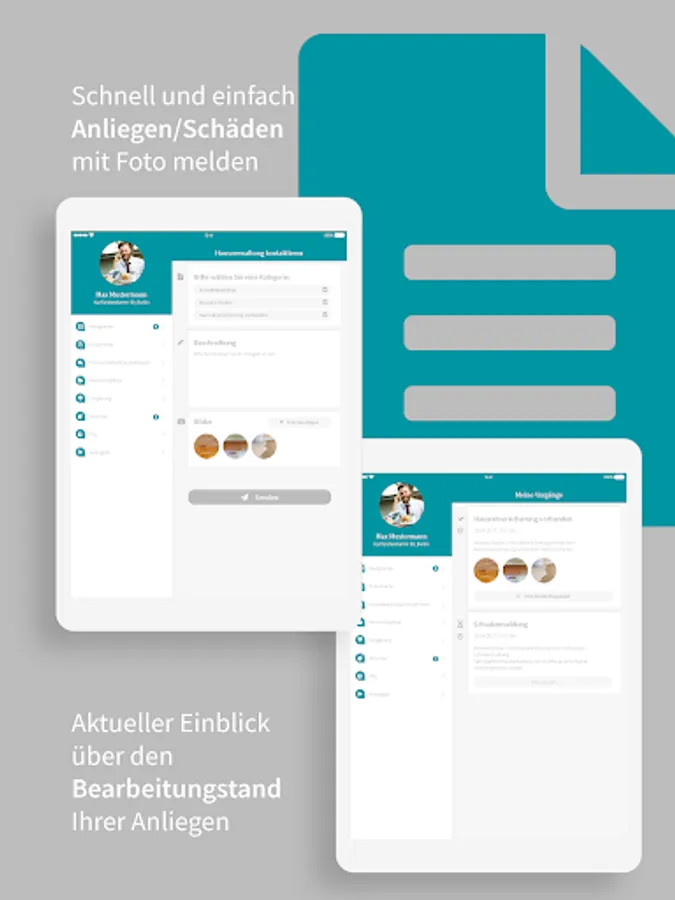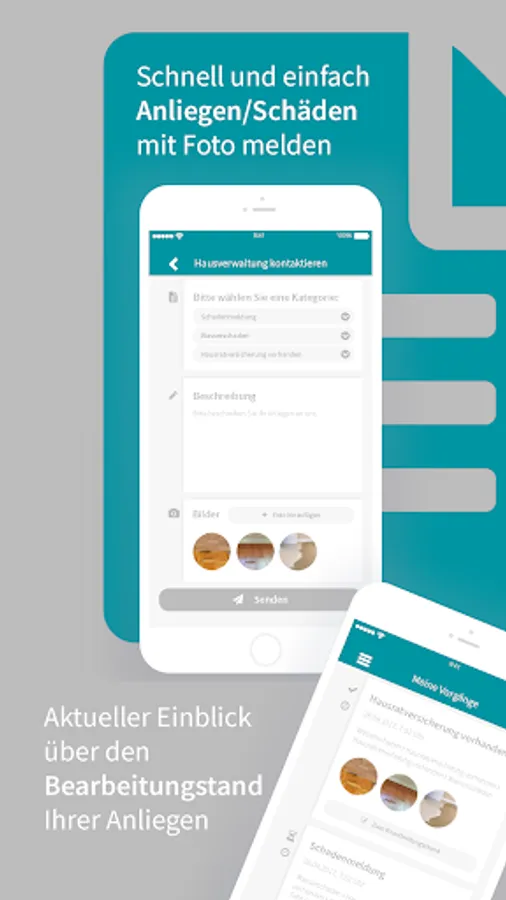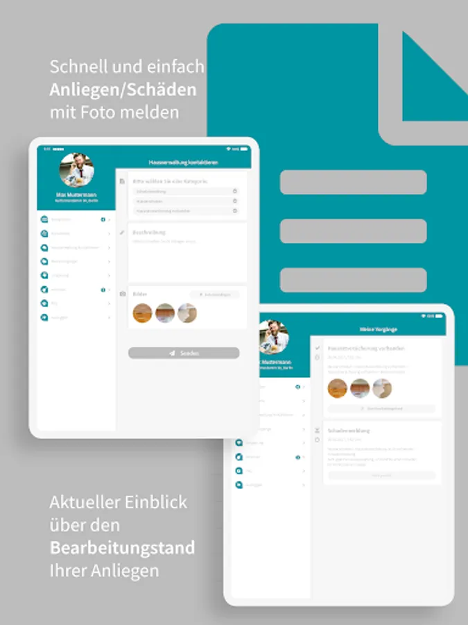 As a tenant or owner, you can report damages or concerns directly with photos via our app. Your inquiries are then available to our employees for processing and can also be forwarded to craft businesses.