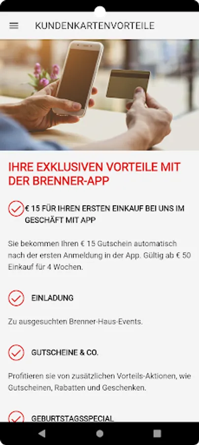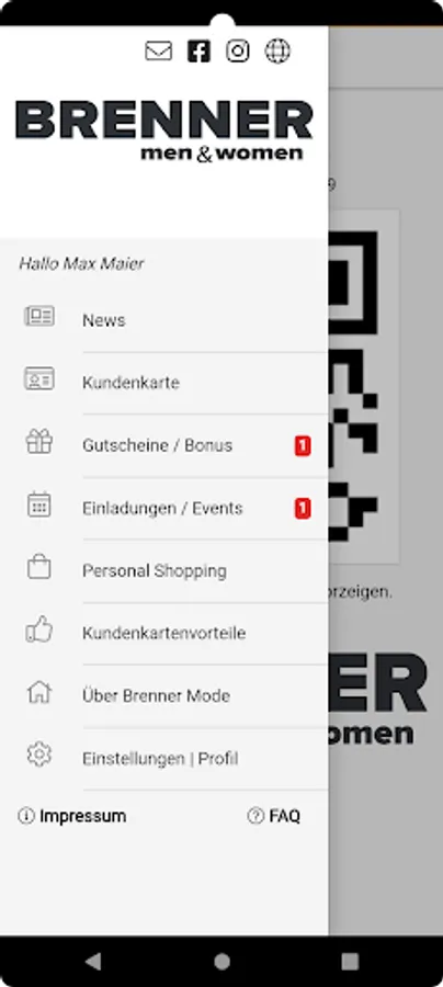 A must for all fashion fans: with the BRENNER app you have all the advantages as a BRENNER customer and your digital customer card is always on your smartphone. You enjoy the full BRENNER all-round PREMIUM service.