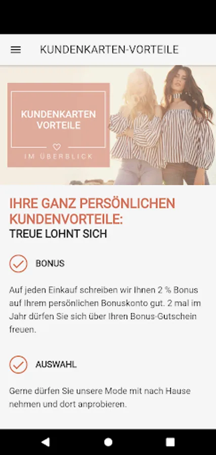 1. A must for all fashion fans: With the Modehaus FAHR app, you have all the advantages as a Modehaus FAHR customer and your digital BONUS CARD is always with you on your smartphone.