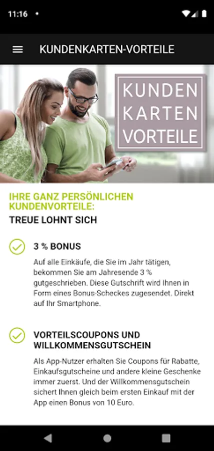 3. Bonus check: As a customer app user, you receive a 3% bonus on all purchases at the end of the year. Your bonus check is always with you in the app. Anytime.