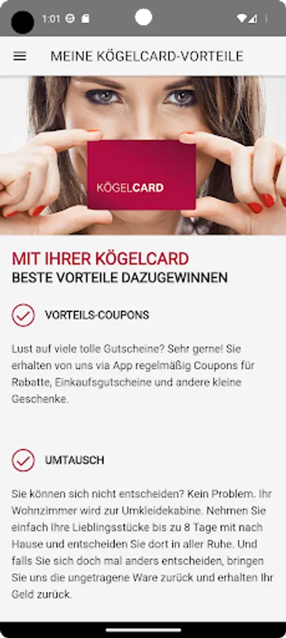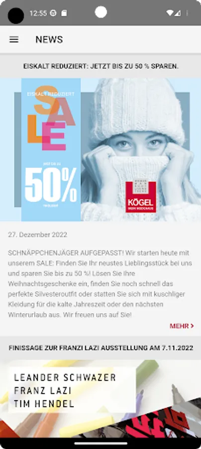 With the Modehaus Kögel app, you always have all the benefits of being a Kögel customer and your digital KögelCard with you on your smartphone.