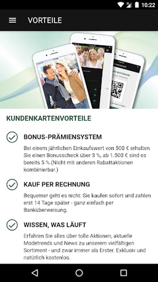 Get your exclusive benefits directly pushed to your smartphone. This way, you can benefit directly and immediately from your advantage vouchers such as € coupons, giveaways and discounts and redeem them directly with the app.