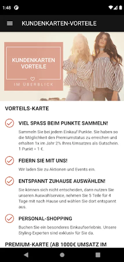 Digital shopping receipt: Thanks to the app, you always have an overview of all your purchases. 6. News: Always up to date when it comes to fashion! We keep you informed about current trends and promotions in our news blog.