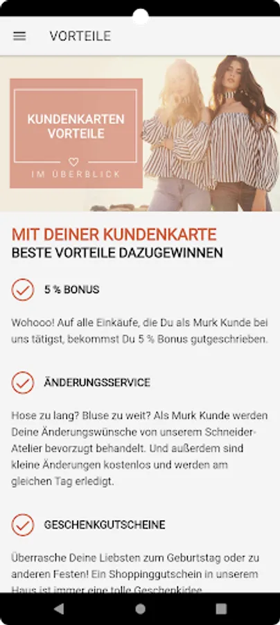 A must for all fashion fans! With the Murk app you have all the advantages of being a Murk customer and your digital customer card is always with you on your smartphone.