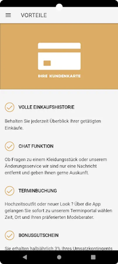 Wedding outfit or new look? The app takes you straight to our appointment portal, choose the time, place and your preferred fashion consultant.