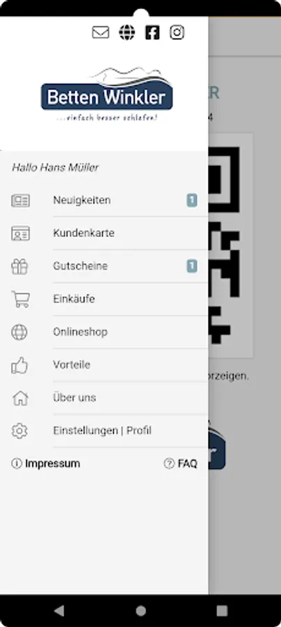 Please note: The app is exclusively for our Betten Winkler customers. If you are not yet a customer of ours, stop by one of our branches or register as a new customer directly via the app and you will receive your access data.