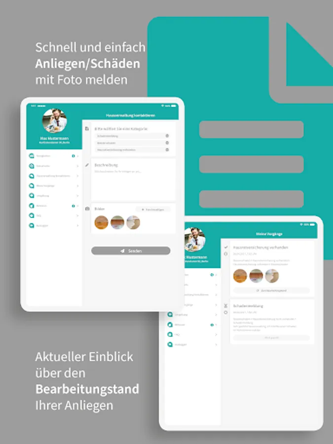 As a tenant or owner, you can report damage or concerns directly with photos using our app. Your inquiries are then available to our employees and can also be forwarded to craft businesses.