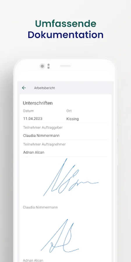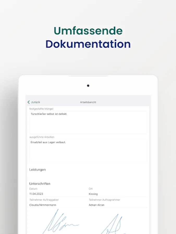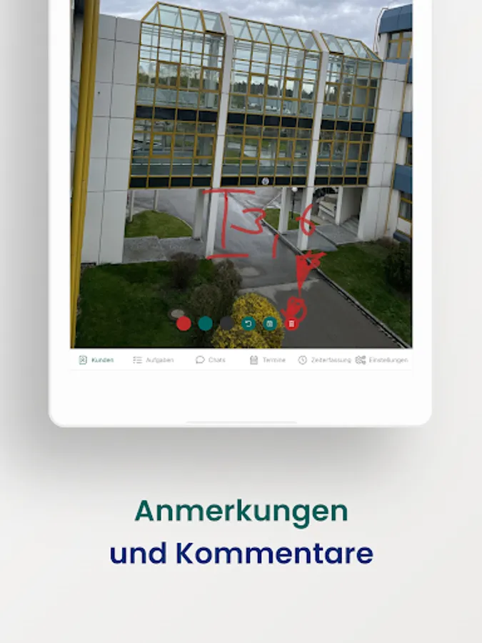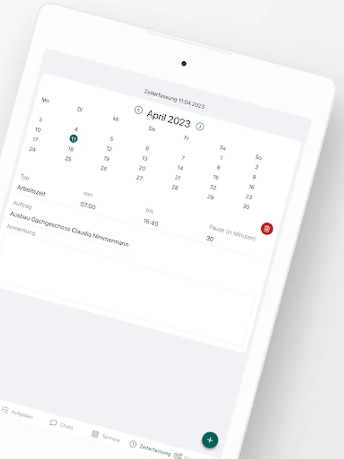 With our app for the Handwerksbüro Live software, you not only have mobile access to your customer data and the project chat, you can also conveniently record: