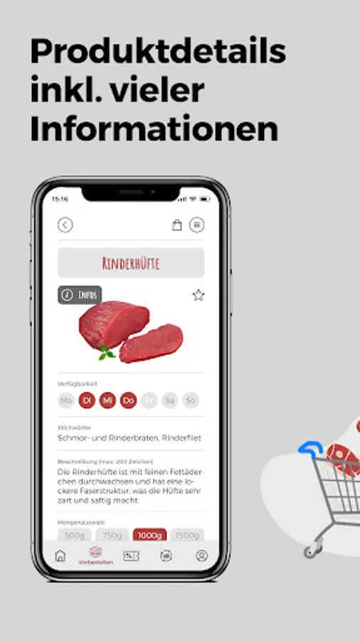 With our butcher app, delicious goods can be ordered at the best price. No matter if pick-up, delivery or catering - everything is possible with us!