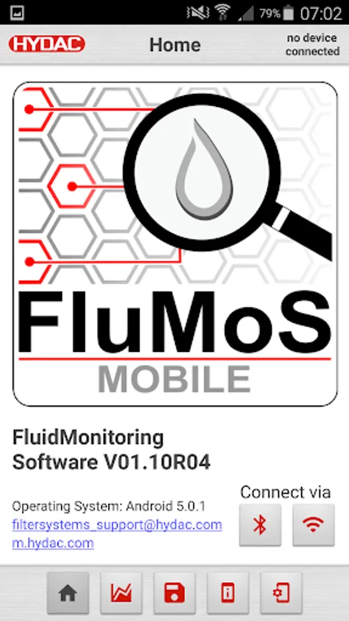 FluMoS mobile is thus an important component for the analysis of measured fluid parameters and maintenance measures to be derived from them in the context of modern Predictive Maintenance approaches. Simple data distribution from the machine to Predictive Maintenance planning thus takes place, either in each office or to globally networked end devices. FluMoS mobile thus integrates itself seamlessly into the family of condition monitoring solutions from the HYDAC Company.