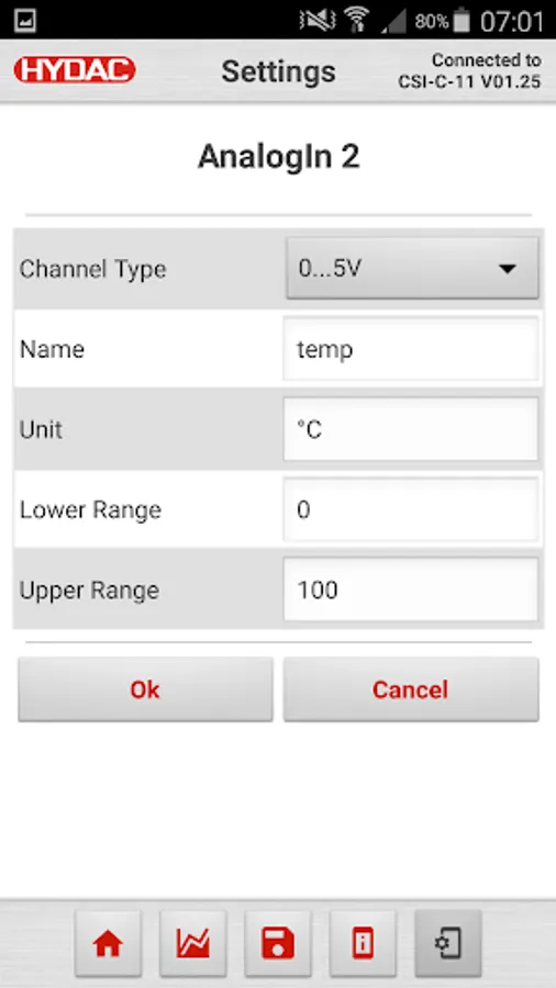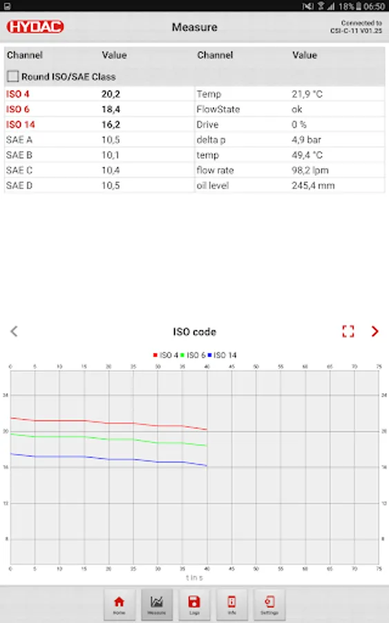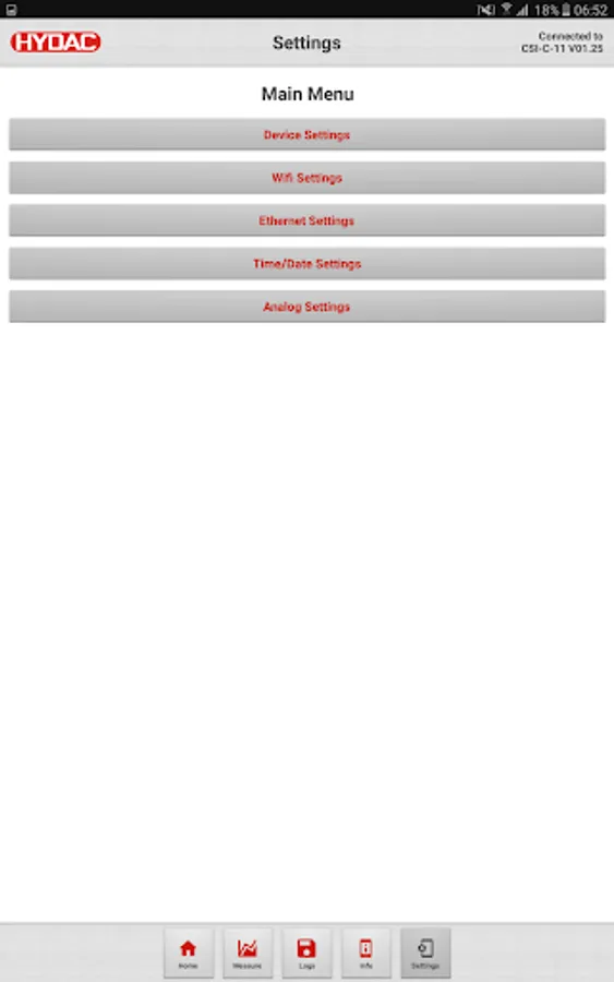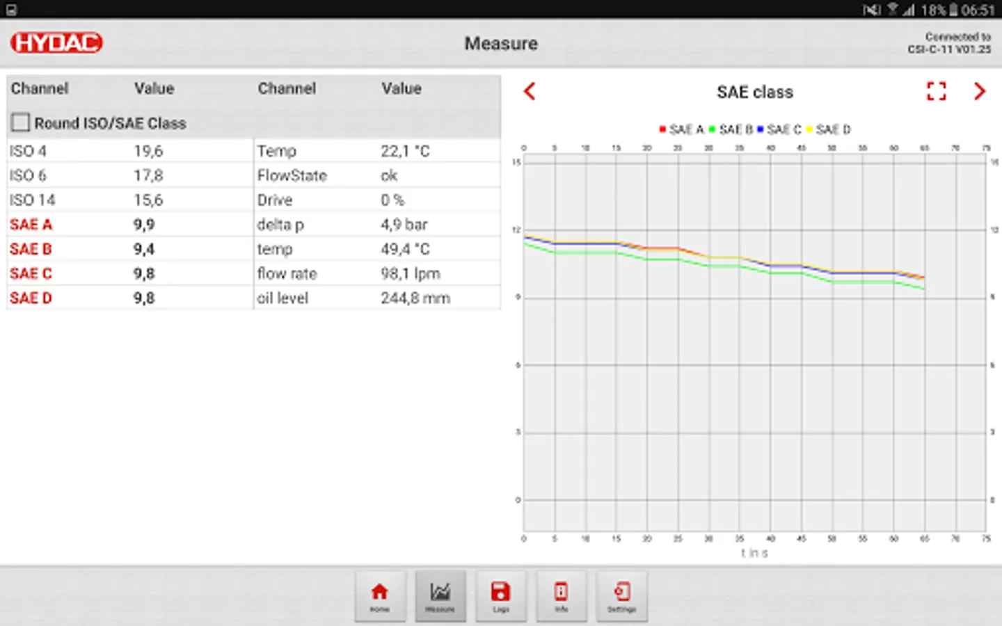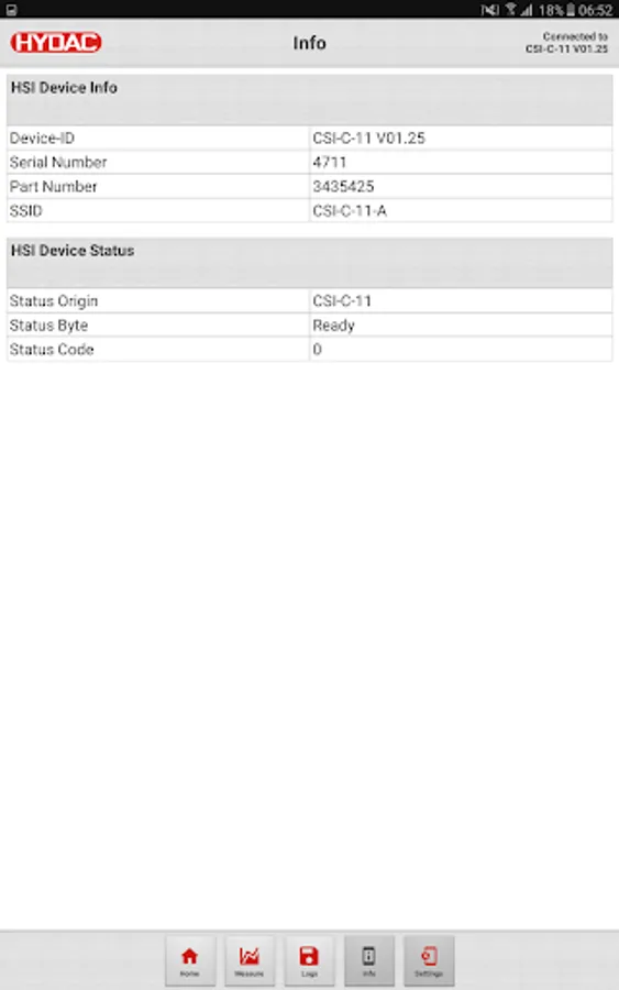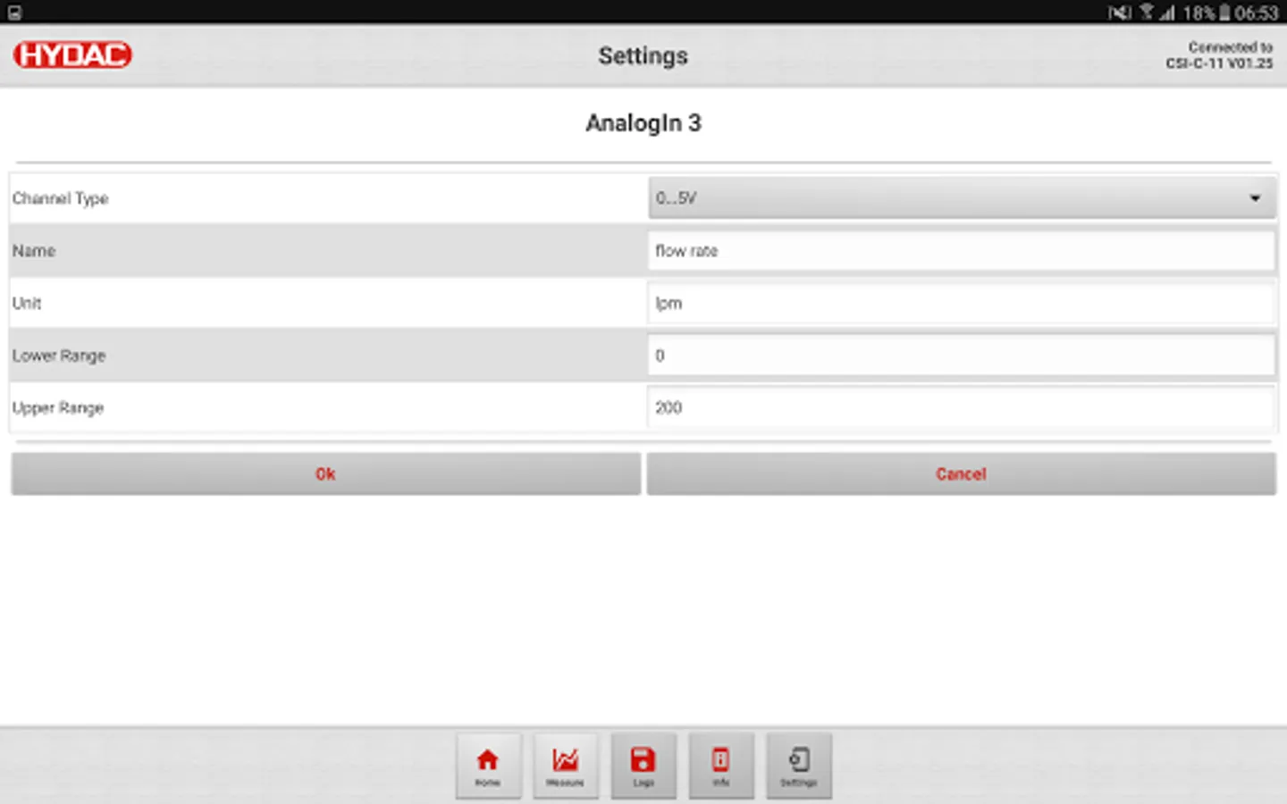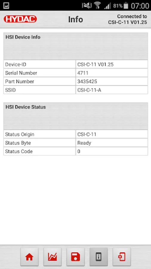 On the HYDAC side, currently the products FCU 1000, SMU 1200 and CSI-C-11 (e.g. as an extension to CSM) are supported by FluMoS, whereby the CSI-C-11 can also be parameterized via the app (e.g. Wi-Fi settings, parameters of connected sensors).