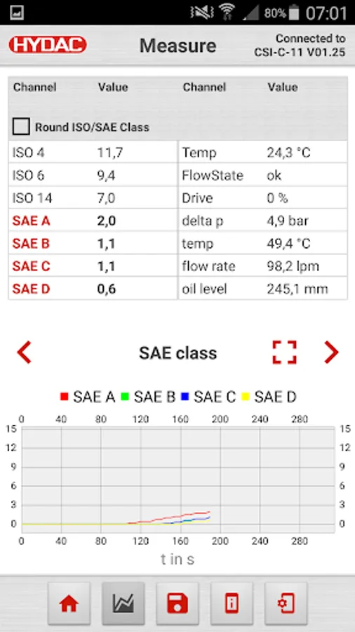 The FluMoS mobile FluidMonitoring software is a tool for the wireless transmission of fluid data to mobile end devices (e.g. Smartphone, Tablet-PC). This makes it possible not only to display received measured values in real time in tabular and graphic form, but also to save them on mobile end devices and to distribute them using the "Share" button (e.g. e-mail dispatch, file-sharing systems, cloud upload, etc.).