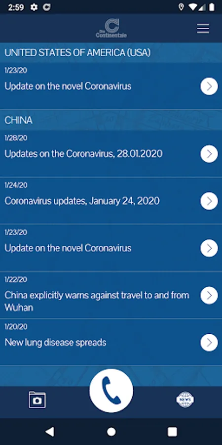 The Continentale emergency app helps whenever you need help. The app has an emergency call feature that connects you directly to a medical service center in case of an emergency. At the same time, your geolocation data is forwarded to the ServiceCenter and the medical staff and doctors as well as security experts can specifically initiate the necessary support. Furthermore you can use 24/7 our medical videoconsultation. You will also receive useful country information and alerts.