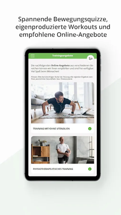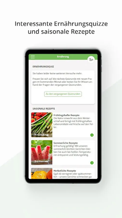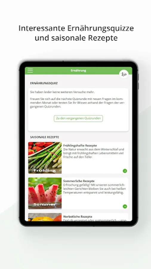 • Take part in our nutritional / relaxation / exercise quizzes that are worth knowing and win attractive prizes, be inspired by our seasonal recipes or watch training videos / relaxation tips.