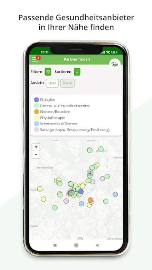• Find the right i-gb partner in your area (based on available reviews) in order to get active there with your i-gb card or i-gb app at a reduced price or even free of charge. For example, you can visit the following health providers and get a discount: