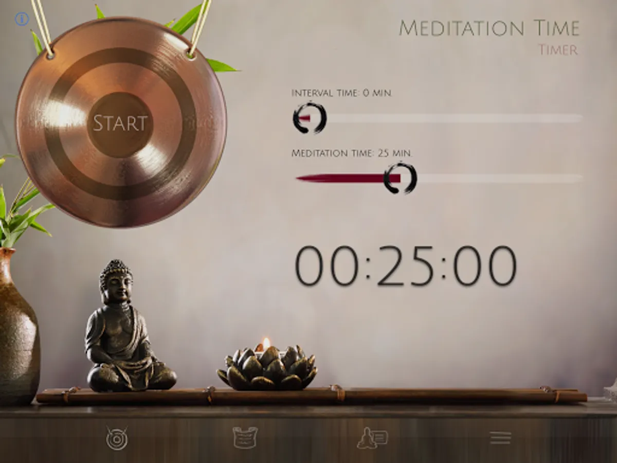 The "Meditation Time App" is a simple and clean timer for your meditation session. It lets you set the duration of your meditation and offers a mindfulness bell that rings in an adjustable interval. Choose from a wide variety of Tibetan singing bowls for the gong.