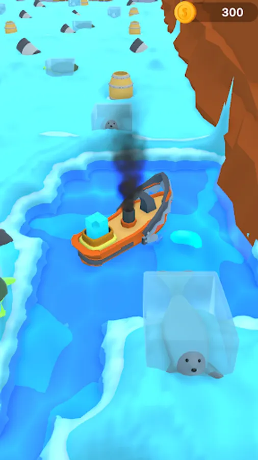 Es ist Zeit, die Beute auf dem Eis zu erkunden, Sie müssen die Robben und Delfine retten, die Sie brauchen, um dies zu tun, können Sie die Fässer benutzen, durch die Tore gehen und den Sieg genießen