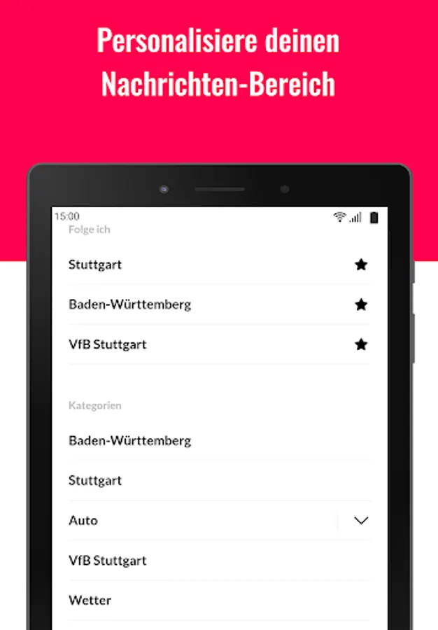 If you are particularly enthusiastic about certain categories, you can favorite and filter your favorite topics in our BW24 app. This way you won't miss any important headlines!