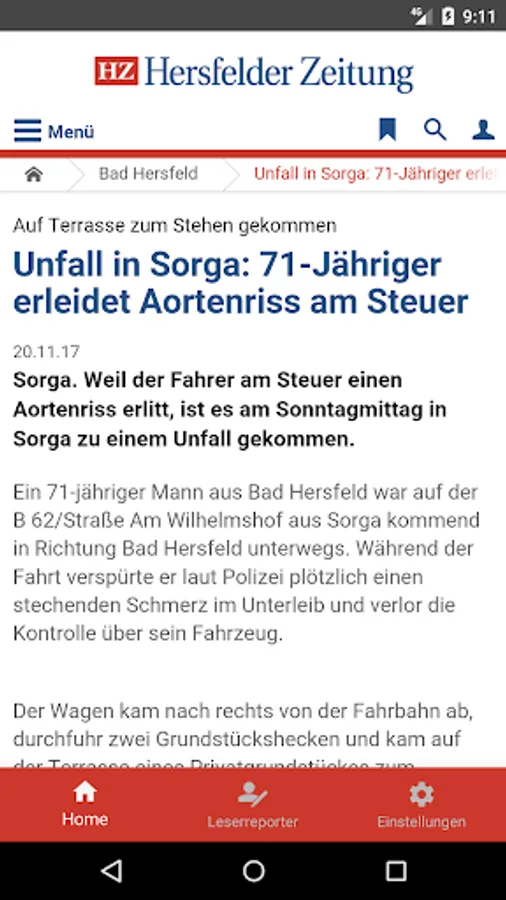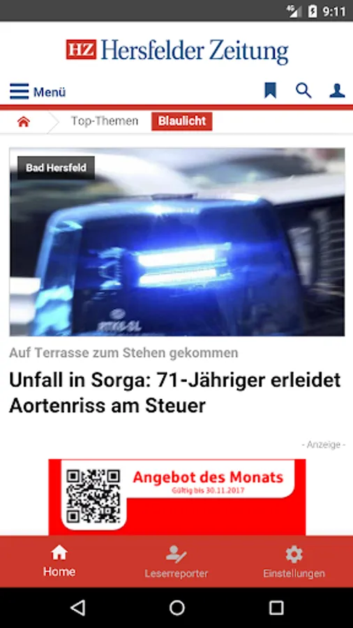 The free news app from the Hersfelder Zeitung promises the same quality that you are used to from the newspaper. You read all the local news from the following cities: Bad Hersfeld, Breitenbach, Kirchheim, Niederaula and Oberaula, Hauneck, Haunetal and Eiterfeld, Heringen, Friedewald, Hohenroda, Schenklengsfeld and Philippsthal, district of Rotenburg, Ludwigsau and Neuenstein.
