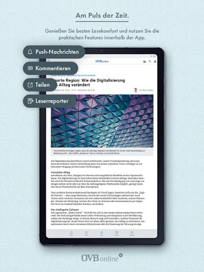 Since the app accesses the newspaper website, you always have the latest version of OVB online.