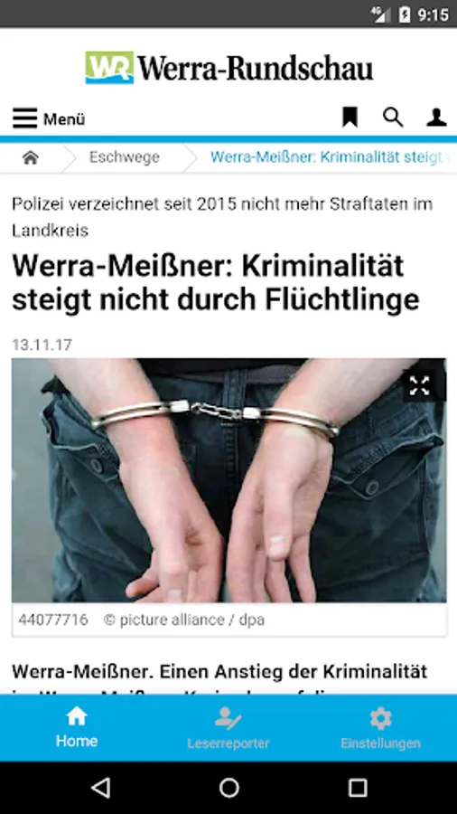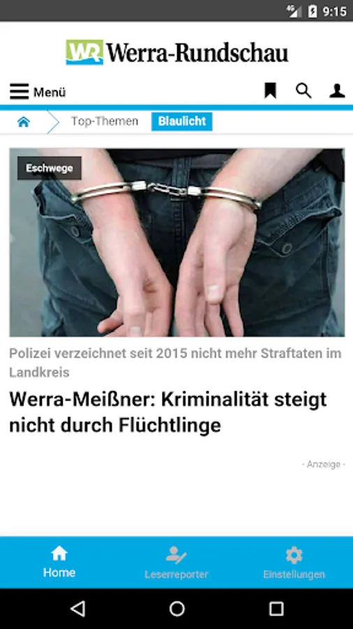 If you are interested in Eschwege and the region, you need the free Werra-Rundschau news app. This provides you with local reports Eschwege, Sontra, Waldkappel, Meinhard, Wanfried, Wehretal, Meiszligner, Berkatal, Herleshausen, Ringgau, Weißenborn, Hessisch Lichtenau, Großalmerode, Witzenhausen, Bad Sooden-Allendorf and Neu Eichenberg.