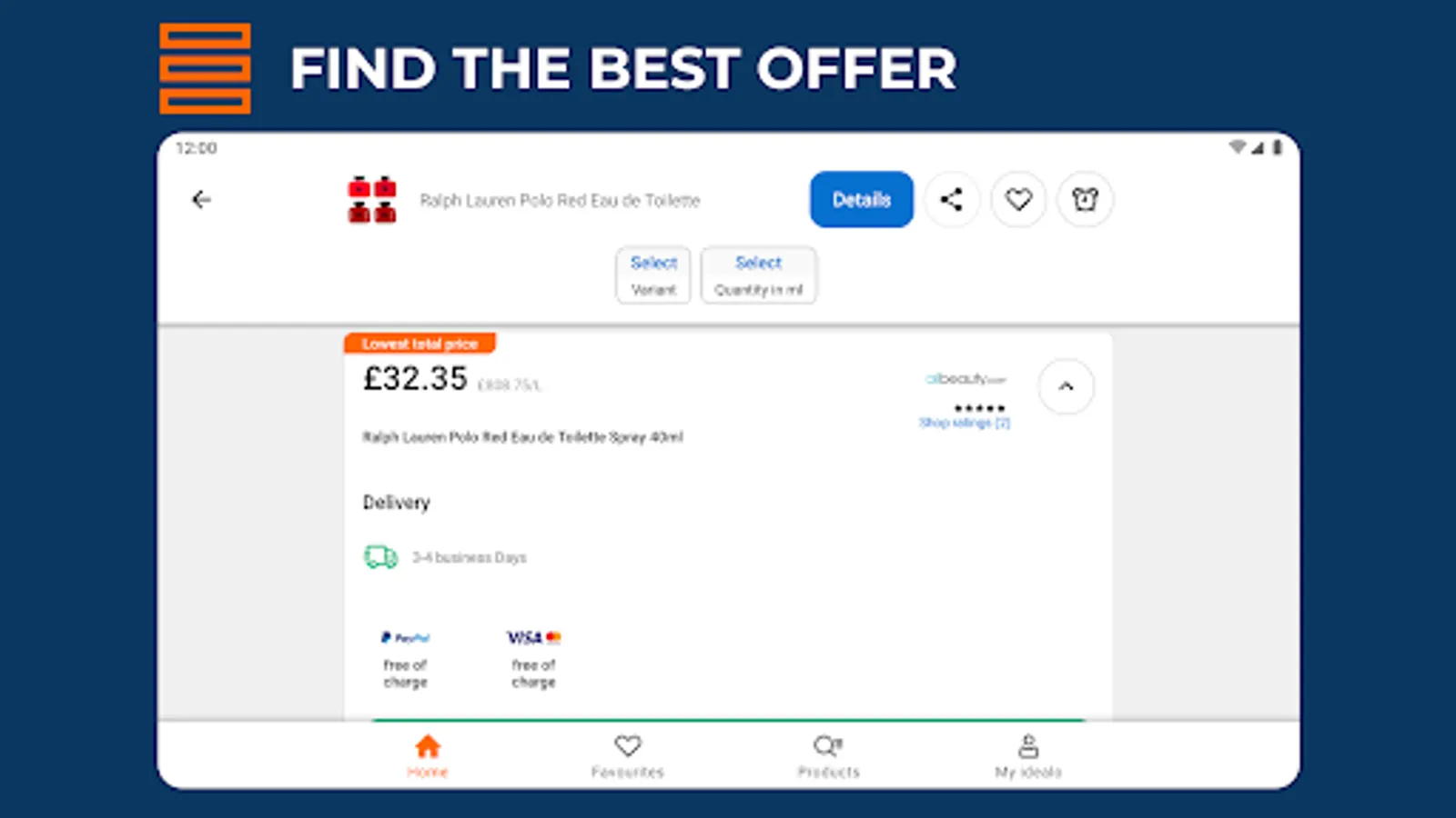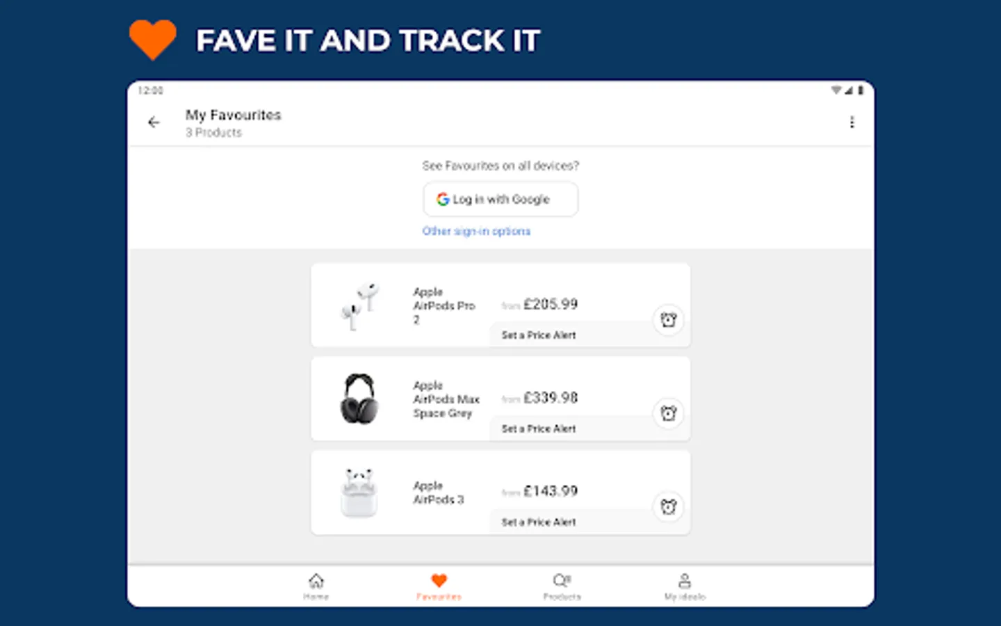 ✔️ Keep track of your products by adding them to Favourites