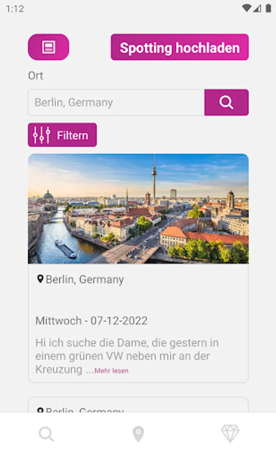 Spotdem will completely change everything. Who doesn't know it: you're standing at the traffic light and there's someone next to you in the other car who comes across as sympathetic. You look at each other for a moment, laugh, and both think about how nice it would be if one spoke to the other. Unfortunately, in the end nobody dares. With Spotdem that finally stops. From now on you will be able to find each other.