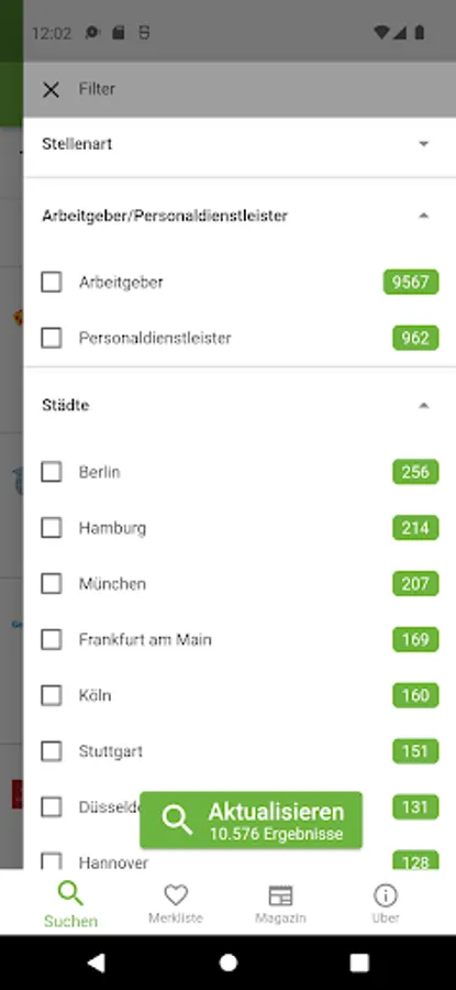 • Filter function for cities, employers, regions, etc.