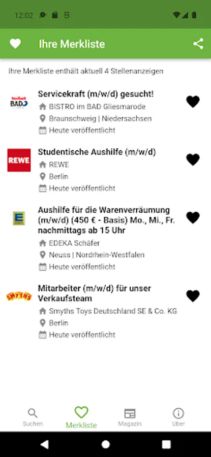 Did you find a part-time job during your search that could also be of interest to acquaintances or friends? Then use the integrated function to share jobs and recommend a job advertisement.