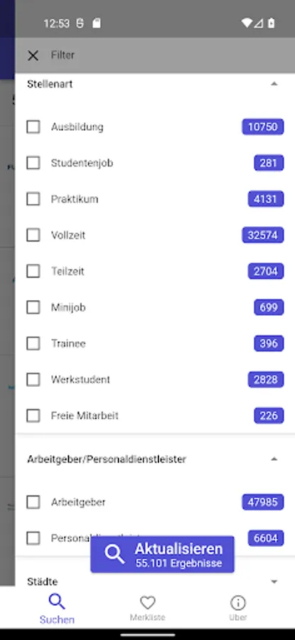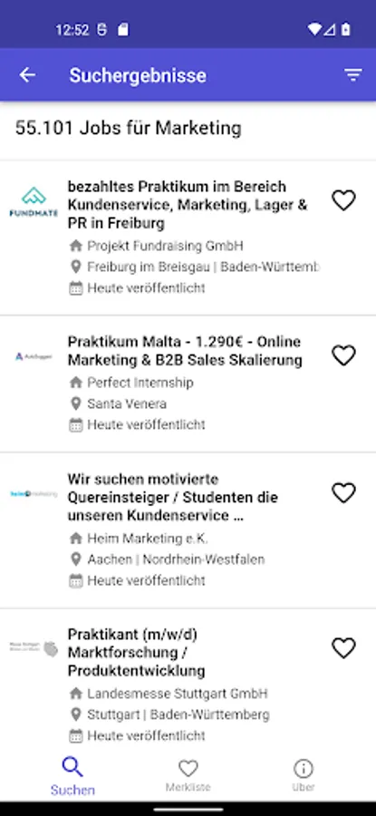 With the Stellenangebote.info app you can search through over 1.5 million job offers quickly and easily. The regional, activities and company filters limit your search and ensure more precise results when looking for a job. So that you can find the right job offer quickly and easily!