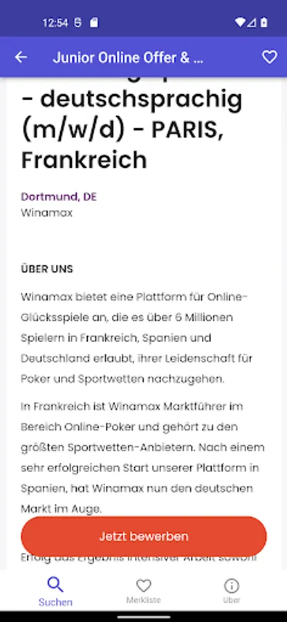 Have you found a suitable job? Then save the job offer by clicking on the bookmark: "Remember job offer" next to the advertisement. This way you can easily find all appealing jobs in the watch list.