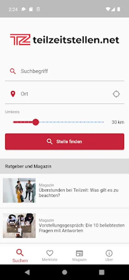 Teilzeitstellen.net is your career portal for those looking for a part-time job anywhere in Germany or your region. With the app you can easily search and find the right part-time job from anywhere with your mobile phone.