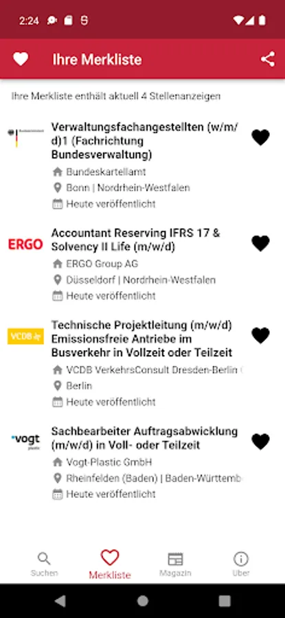 Have you found an interesting and suitable part-time position? Then put them on the watch list and collect all the job offers that come into question for you.