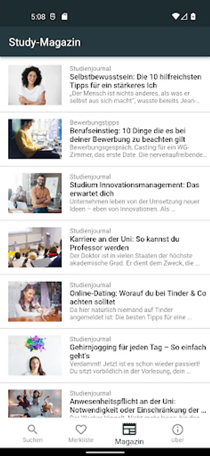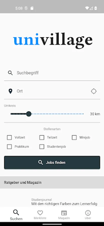Since 2009 univillage.de students, graduates and interested supplied with news, Tip sund information about studying. The integrated job search enjoys a high popularity, so we decided this univillage.de - to publish App.