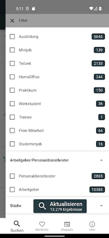 The jobs can be found through the Exclude from employment agencies and temporary employment agencies, taking into account selected cities or employers, and the targeted search to selected career portals, further reduced.
