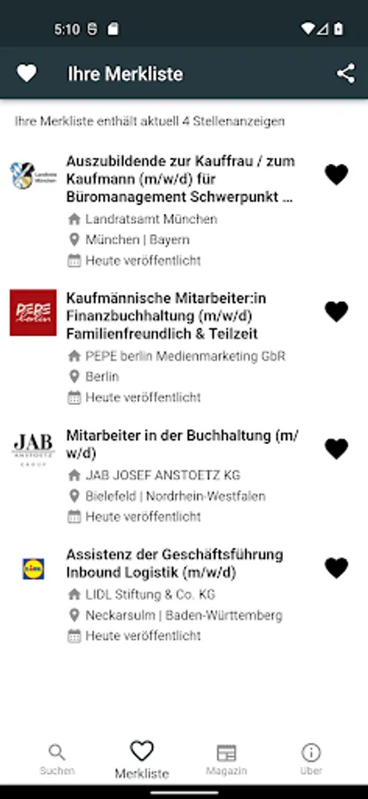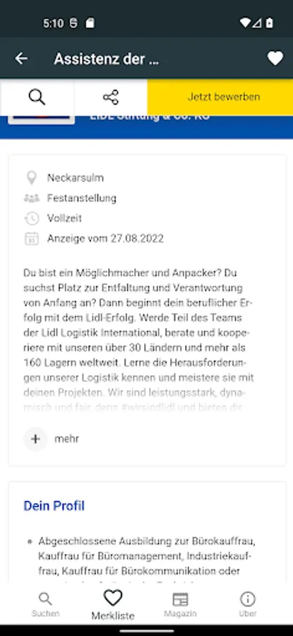 With the help of the list, you collect interesting job and so keep track. The integrated search history allows you to quickly repeat of past searches and thus saves unnecessary re-keying.