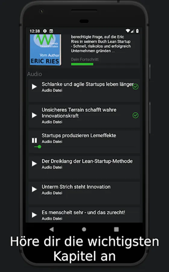 - Lean Startup by Eric Ries: a summary as Audiobook, the ten key messages as text and a quiz