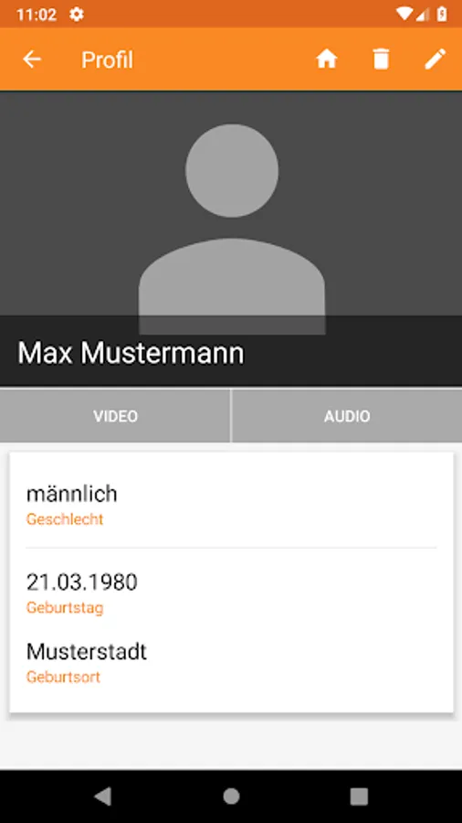 "Category" (select category) Here you determine the assignment of the profile person to the respective kinship group or acquaintance group (family Mustermann, family Müller, work colleagues, holiday acquaintance, neighbors etc.).