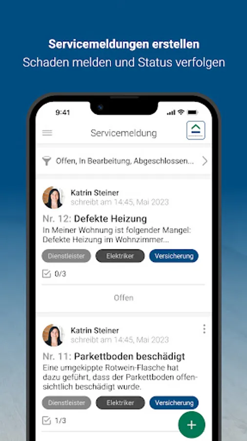 - Interactive: Efficiency is part of our daily business. Your damage reports and other concerns will be processed quickly and you will receive regular status updates via push notification.