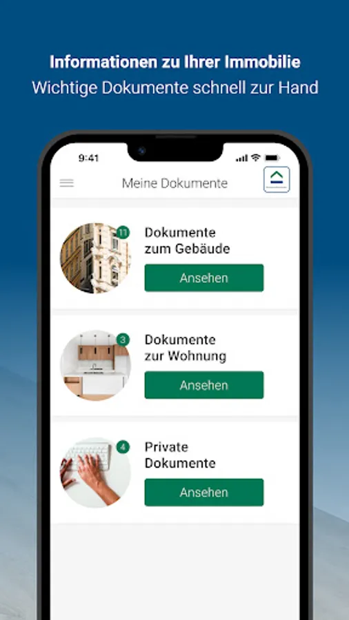 As a customer of Bauverein Rheinhausen eG, you benefit from particularly innovative customer service that offers you a lot of freedom. With the BV Rheinhausen app you can report concerns and damage to us around the clock using your smartphone, including photo documentation. We also provide you with a digital document folder with important documents for your property. We use the digital bulletin board to proactively provide information about important information about the property entrusted to us via push messages.