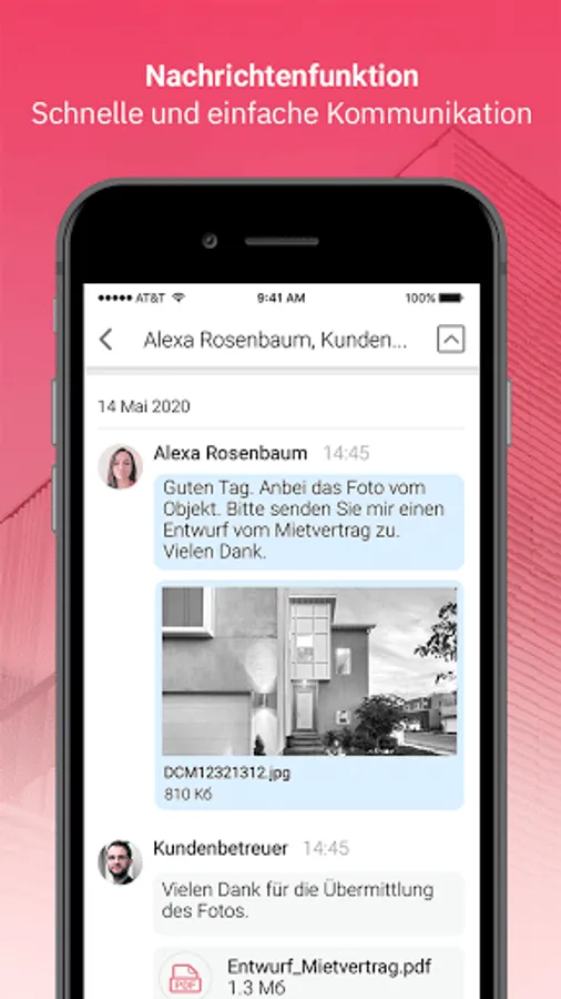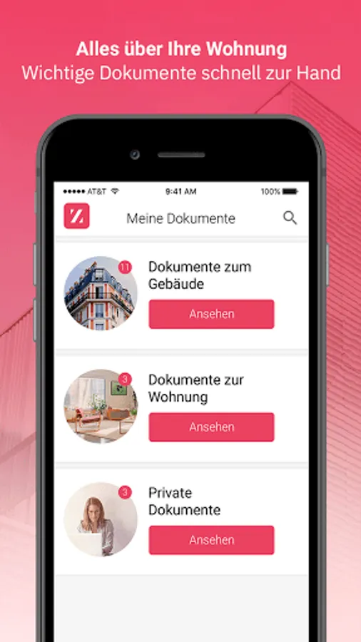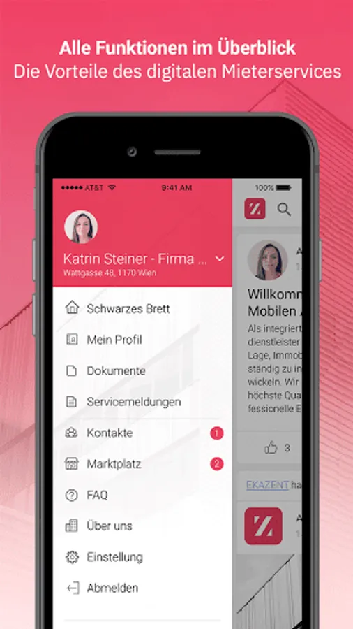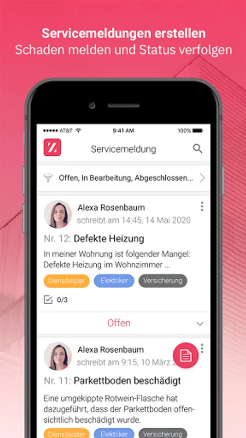 Benefit from the Ekazent app and report your damage and concerns to us conveniently around the clock via our tenant app. In addition, you can access important documents digitally via your smartphone, tablet or computer, view them at any time and receive important information about the property directly on your mobile phone via push message. So you are always well informed about your property - regardless of where you are staying.