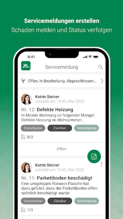 As a customer of FRIGO Immobilientreuhand GesmbH, you benefit from a particularly innovative customer service that offers you a great deal of freedom. With the FRIGO app, you can report concerns and damage to us around the clock, including photo documentation, via smartphone. In addition, we provide you with a digital document folder with important documents for your property(s). We use the digital bulletin board to proactively provide push notifications about important information about the properties entrusted to us.